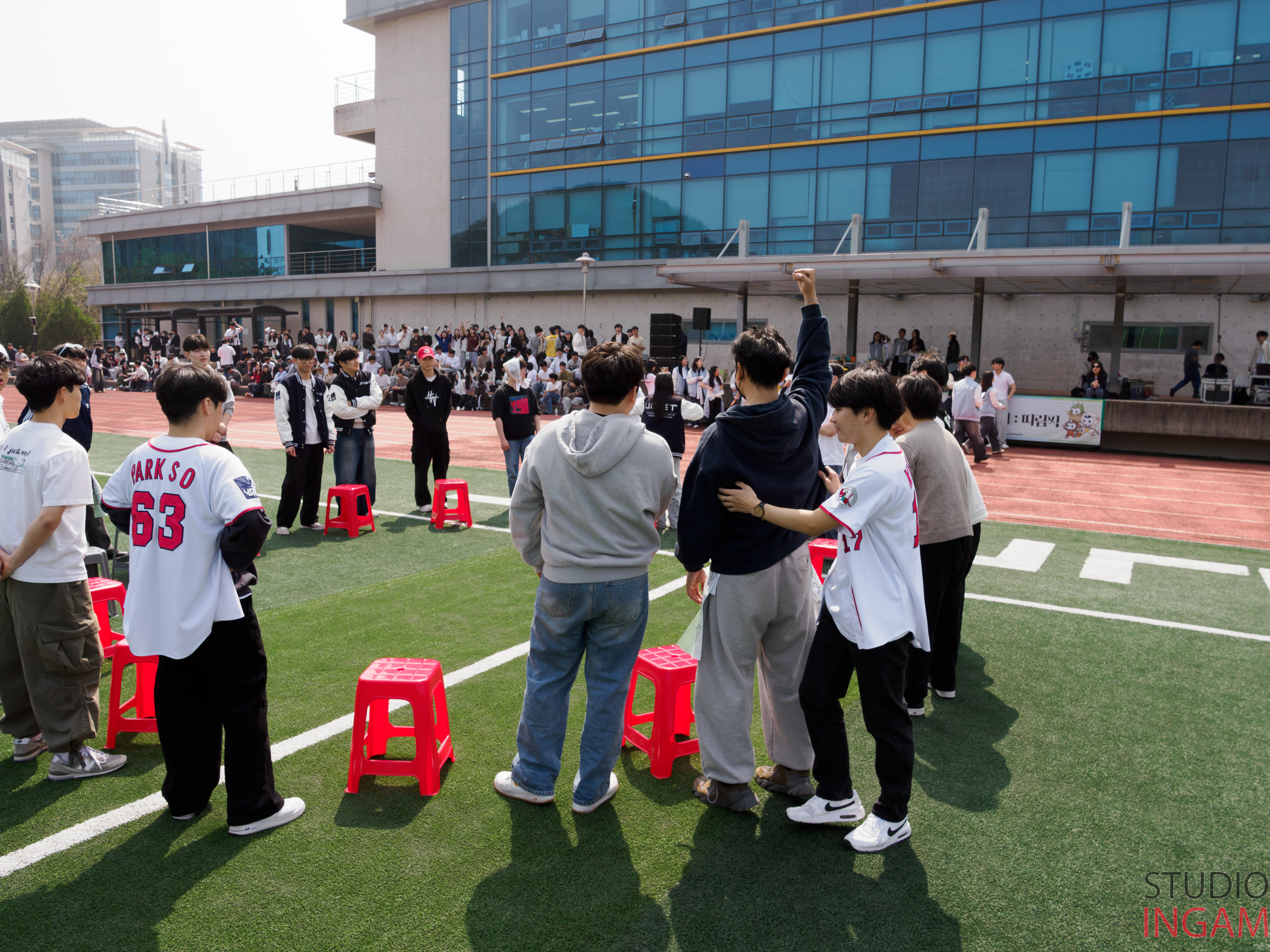 First-year students participate in the 2026 Freshmen Sports Day at UNIST, engaging in team-based activities.ㅣImage Credit: Studio Ingam