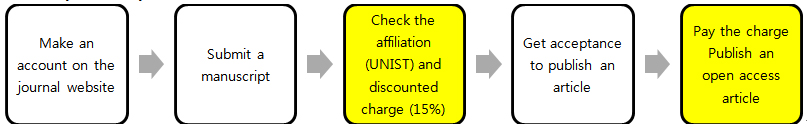 - UNIST members who publish their articles in BioMed Central, Springer Open and Chemistry Central journals can get a 15% discount on the article processing charge (APC).