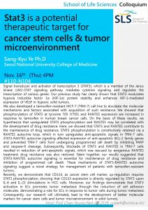 For the lecture, Professor Sang-Kyu Ye from Seoul National University College of Medicine, will be presenting “Stat3 is a potential therapeutic target for cancer stem cells & tumor microenvironment”