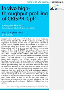 For the lecture, Professor Hyongbum (Henry) Kim from Yonsei University College of Medicine, will be presenting “In vivo high-throughput profiling of CRISPR-Cpf1”