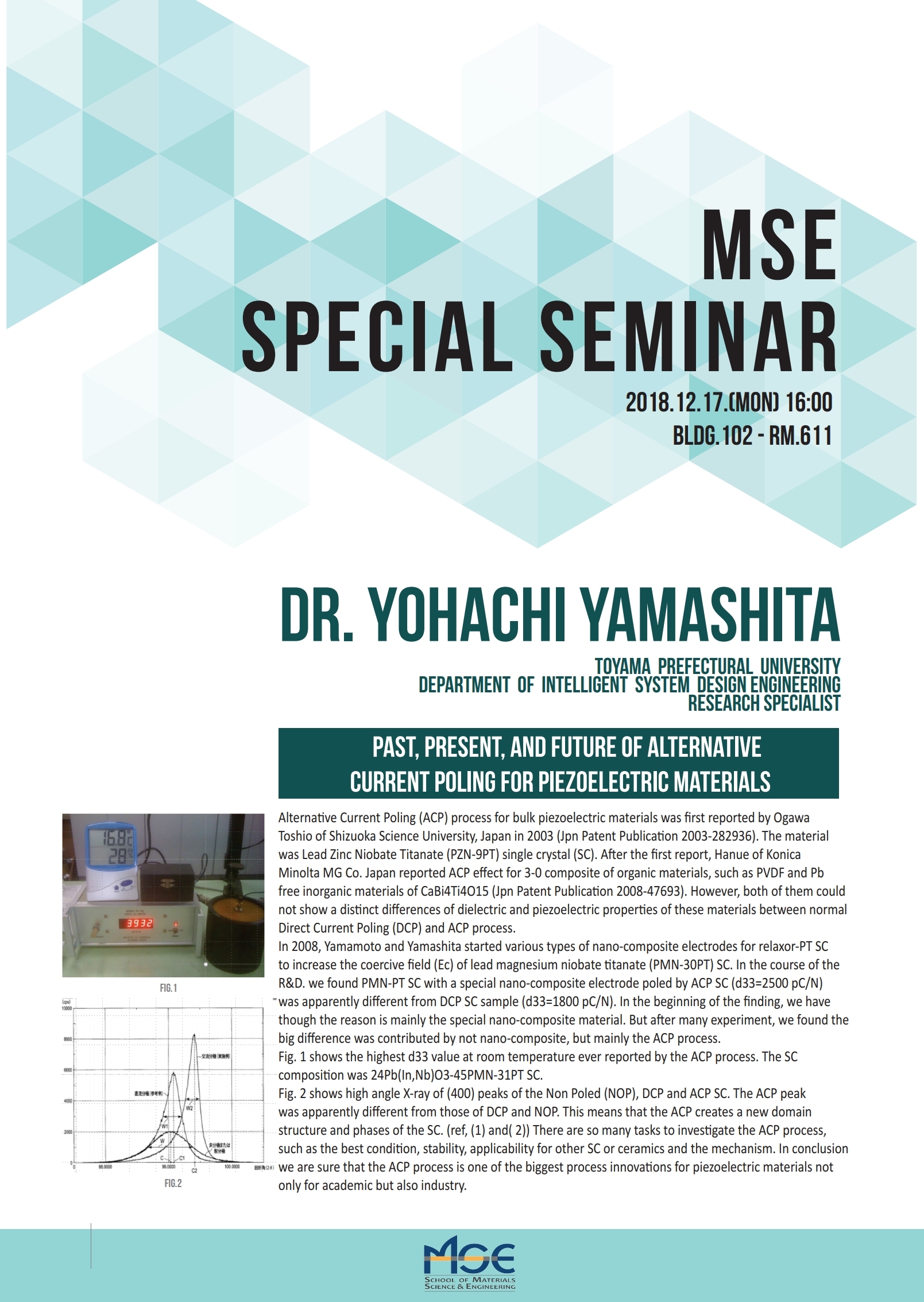 For the lecture, Dr. Yohachi Yamashita from Toyama Prefectural University will be presenting “Past, Present, and Future of Alternative Current Poling for Piezoelectric Materials.”