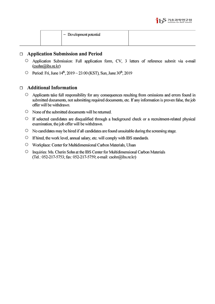 2019-02 Recruitment Announcement for Research Positions at the Center for Multidimensional Carbon Materials Thursday, June 13, 2019 Download Application-Form-ENG.doc Previous Post Tenure-track Research Position at the IBS Center for Multidimensional Carbon Materials Next Post UNIST Readmission Application for 1st semester 2019