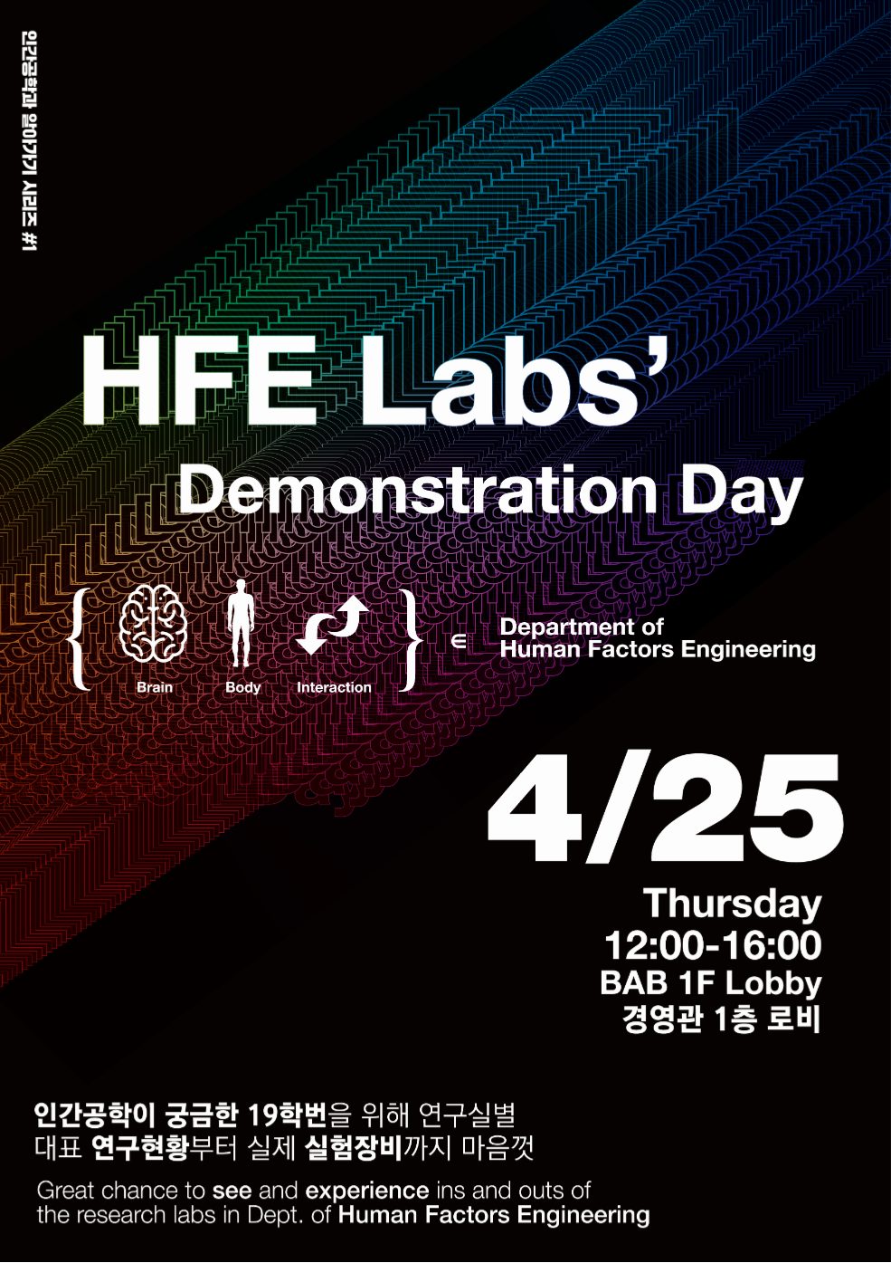 Held under the topic “HFE Labs’ Demonstration Day”, this will be a great chance for you to see and experience ins and outs of research labs in the Department of Human Factors Engineering.