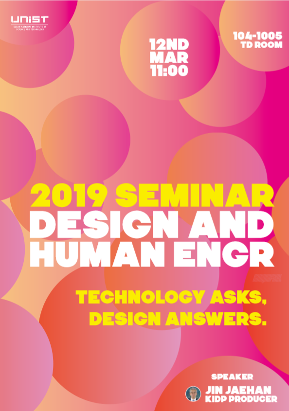 The seminar, held under the theme of “Technology Asks, Design Answer” will feature Producer JaeHan Jin of Korea Institute of Design Promotion (KIDP), as the speaker.