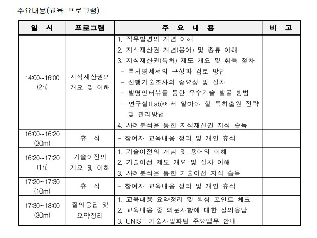 - Participant : UNIST students, faculty, staff members, as well as any inventors affiliated with UNIST (Up to 30).