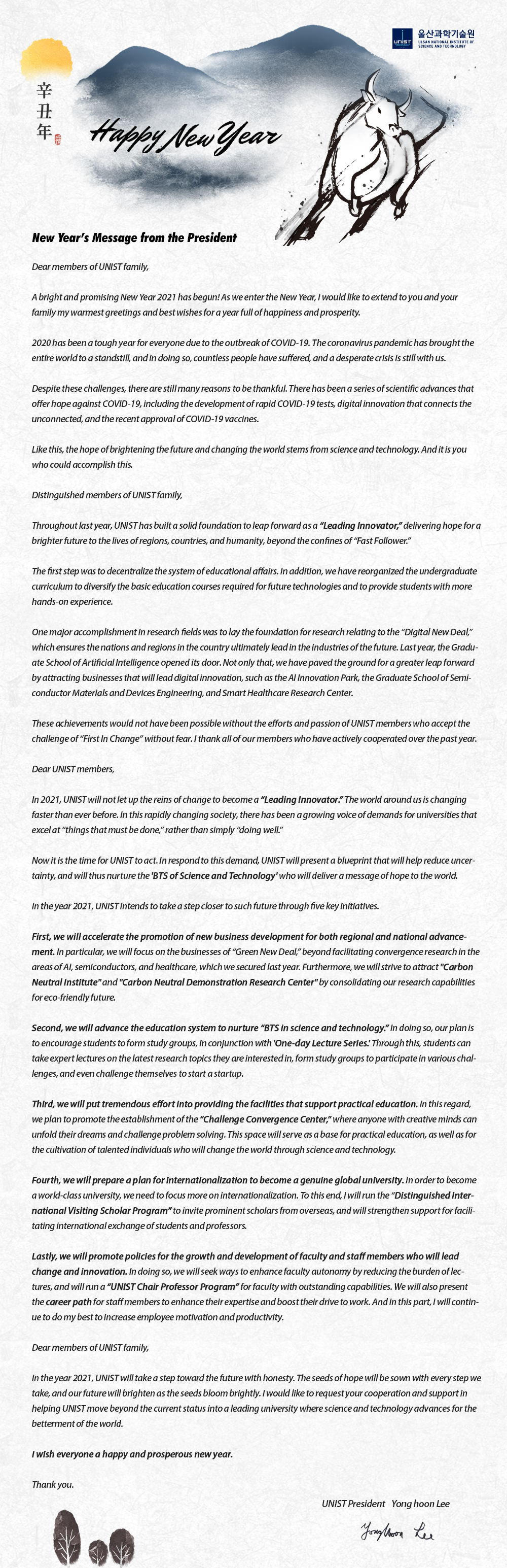 New Year’s Greetings from the President, 2021 Tuesday, January 19, 2021 Download 2021_New-Year’s-Message-from-the-President.hwp Previous Post 2020 Commencement Speech Next Post No post