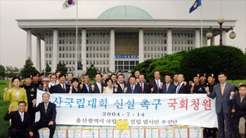 Members of the Assembly and the Citizens of Ulsan, Promoting the Establishment of a National University in front of the Parliament Building (July 14, 2004)