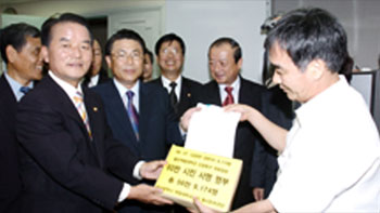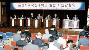 In 2004, there was a relay speech for establishment of a National University. Including the “Ulsan Citizen Organization of National University”, 20 organizations all over Korea partook in this event, urging the establishment of National University in Ulsan. In July of the same year, 33 members of the organization and six members of the assembly delivered the petition to the Congress.