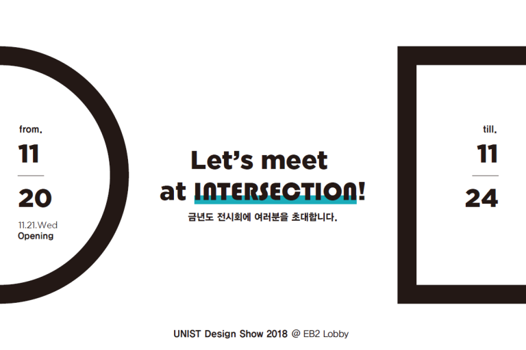 The “DESIGN SHOW UNIST 2018” is scheduled to be held in the 1F Lobby of UNIST Engineering Building II, from November 20 to 24, 2018. The theme of this year’s design show is “Intersection: Where Design Meets Engineering”.