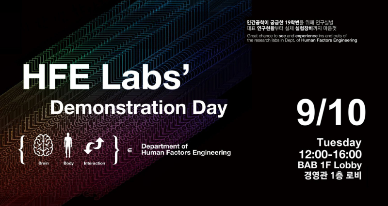 This event aims to offer great chance to see and experience ins and outs of the research labs in the Department of Human Factors Engineering at UNIST.