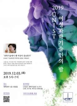 The 2019 UNIST Women in Science Night is scheduled to be held on December 3, 2019. This event is open to all members of UNIST, regardless of gender. Distinguished Professor Jeong Ro Yoon in the Divisi..
