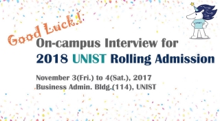 The on-campus admission interview for 2018 Rolling Admission is scheduled to be held at UNIST Business Administration Building from November 3rd to 4th, 2017.