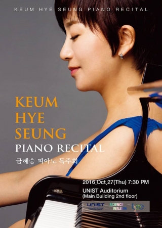 A free piano recital by Keum Hye Seung will be held at UNIST, as part of UNIST Culture Program in October.