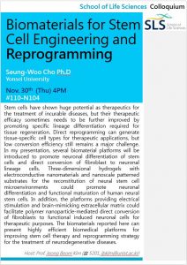 For the lecture, Professor Seung-Woo Cho from Yonsei University, will be presenting “Biomaterials for Stem Cell Engineering and Reprogramming”