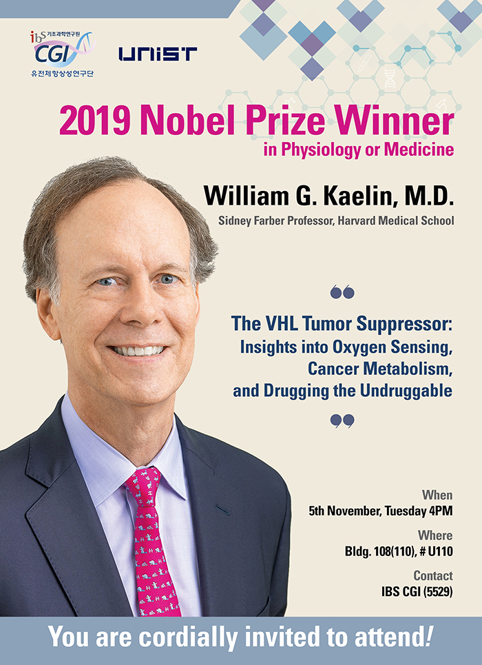 Harvard Medical School Professor William G. Kaelin Jr., one of the 2019 Nobel Laureates in Physiology or Medicine, will visit UNIST to deliver a special lecture for aspiring young scientists on November 5, 2019.