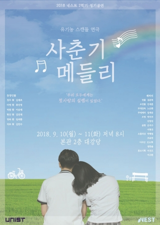 A special play by NEST, entitled “Adolescence Medley” is scheduled to be held at UNIST from September 10(Mon.) to 11(Tue).