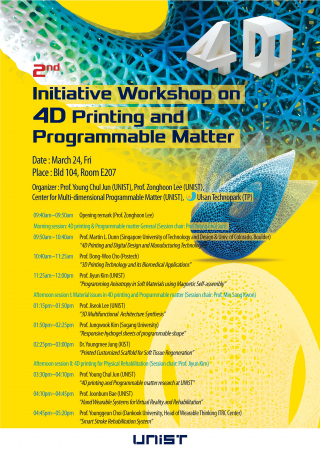 The 2nd Initiative Workshop on 4D Printing and Programmable Matter is scheduled to be held at UNIST on March 24th, 2017.