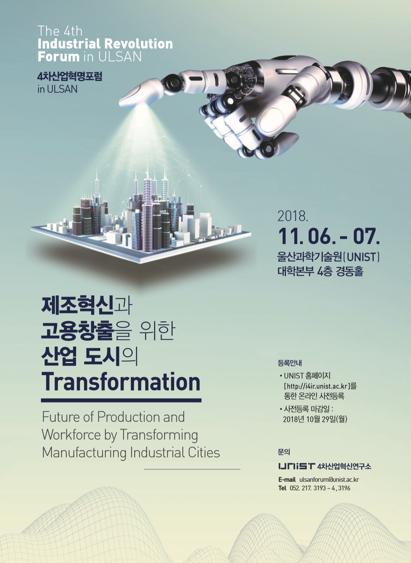 The 4th Industrial Revolution Forum in Ulsan is scheduled to be held from November 6(Tue.) to 7(Wed.) in the Main Administration Building at UNIST.