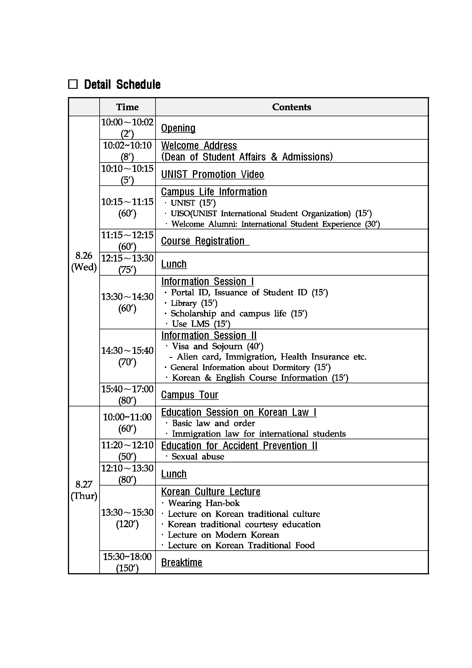 2015-2_Orientation_Detail_Schedule_Eng 2015년 August 10일 1654 × 2339 The Orientation for 2015-2 New International Students