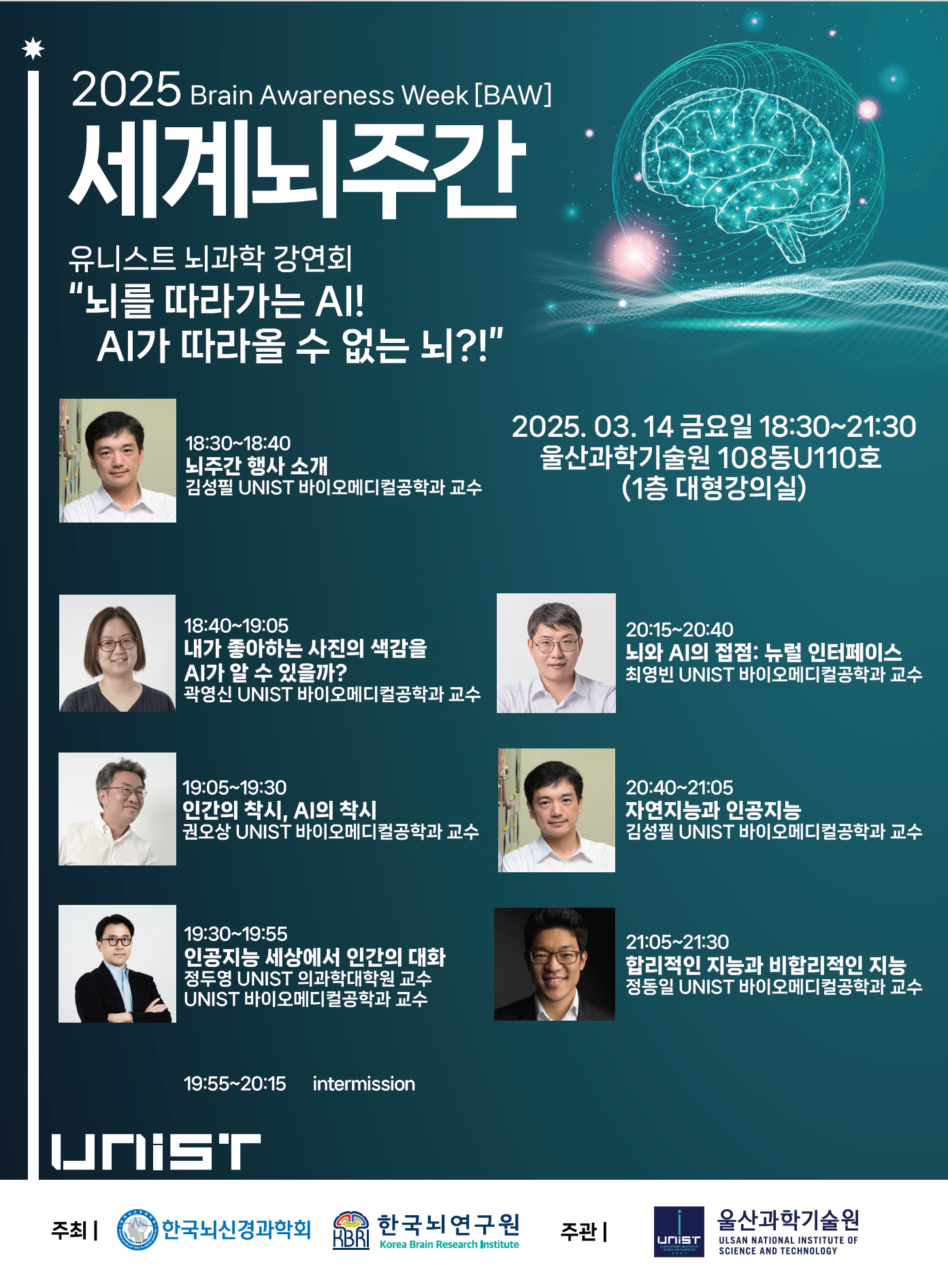 The ‘Brain Awareness Week 2025’ Public Lecture Series will be held at UNIST on March 14, 2025. The ‘Brain Awareness Week 2025’ Public Lecture Series will be held at UNIST on March 14, 2025.