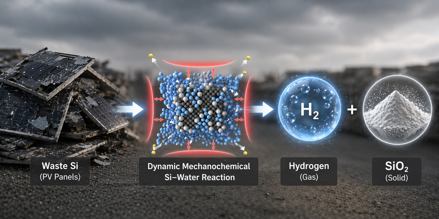 The team led by Professor Jong-Beom Baek developed a mechanochemical process that overcomes the self-limiting silica passivation layer on silicon surfaces. By placing silicon and water with small abrasive beads into a rotating vessel, repeated mechanical collisions strip the silica layer, enabling the reaction to proceed to nearly its theoretical maximum. Experimental results show approximately 1,706 mL of hydrogen per gram of silicon—achieving 99.6% of the maximum yield, significantly surpassing conventional thermochemical methods.