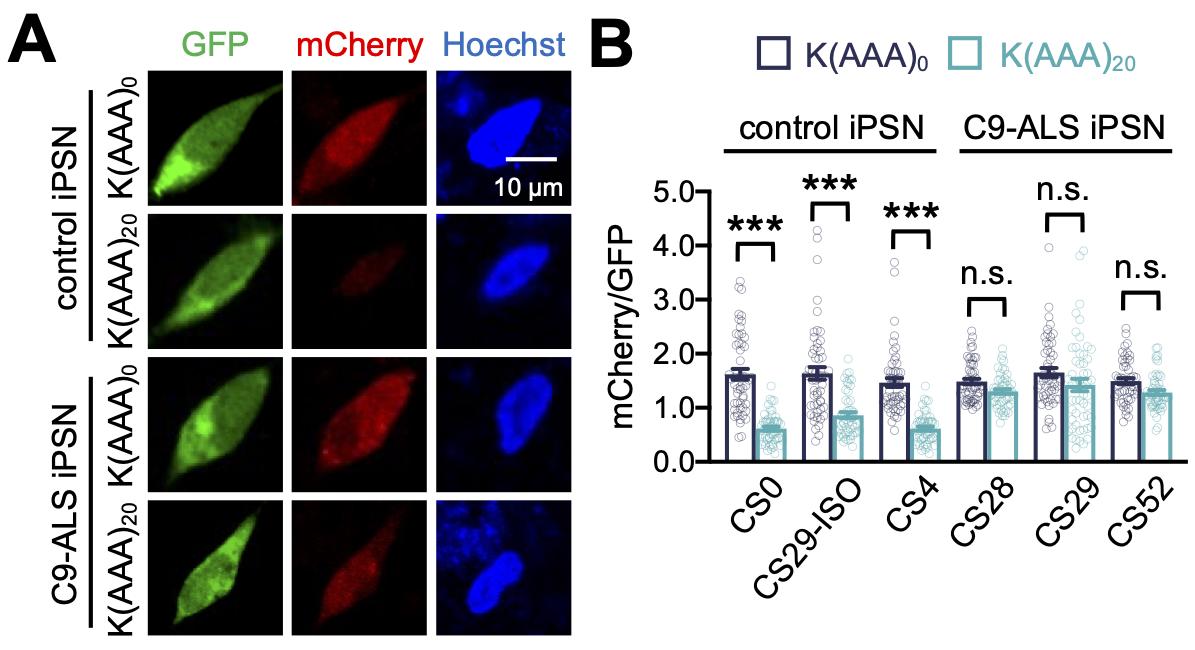 임정훈 교수는 “루게릭병 환자의 유도만능줄기세포에서 분화한 운동신경 세포에서는 ZNF598와 같이 단백질 번역 품질 관리에 관여하는 주요 유전자들이 비정상적으로 발현되며, 결과적으로 단백질 번역 품질 관리가 제대로 일어나지 않는 것을 확인했다”고 설명했다.