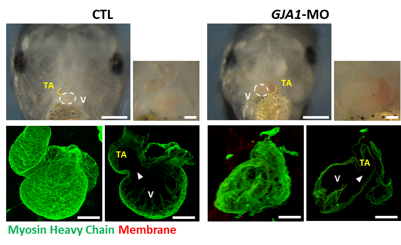 이번 연구에 따르면 간극연접 단백질은 섬모와 섬모 기저부에 존재하며, GJA1 단백질이 비정상일 경우 원발성 섬모와 운동성 섬모 모두 형태와 기능이 이상해졌다. 또 GJA1 단백질 유전자를 억제한 아프리카 발톱개구리에서도 섬모의 형태나 기능 이상으로 인한 섬모질환이 나타났다. 표피의 운동성 섬모가 망가지거나 원발성 섬모의 문제로 심장의 좌우 비대칭 형태가 반전되어 나타나는 내장역위증(Heterotaxia) 등 심각한 질병이다.