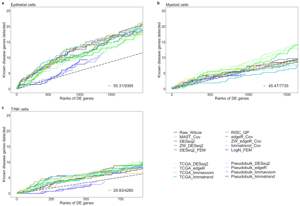 연구팀은 다양한 시뮬레이션 실험과 단일세포 데이터 분석을 통해 46가지 통합분석 방법을 비교했다. 특히, 국내에서 생산한 1기 폐암환자들의 단일세포(상피세포) 데이터를 세포유형별로 통합분석했다. 이를 통해 기존에 폐암관련 유전자로 보고된 90여 개 유전자들이 통계적으로 높은 순위를 가짐을 확인할 수 있었다. 이는 아직 밝혀지지 않은 폐암유전자들 또한 높은 순위로 선별할 수 있음을 시사한다. 이러한 결과는 기존에 진행됐던 수백 명의 벌크샘플 폐암환자의 데이터 분석에서도 달성하지 못한 결과로서 단일세포 통합분석이 폐암유전자 발굴에 매우 효과적이라는 것을 보여주고 있다.
