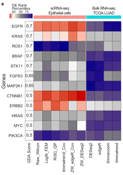 그림3. 단일세포와 벌크샘플 데이터 분석을 통한 주요 폐암유전자들 랭크 비교