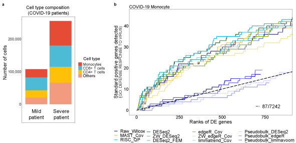 그림4. 10만개의 COVID-19 단핵구 데이터를 이용한 바이러스 반응 유전자 예측 정확도 비교