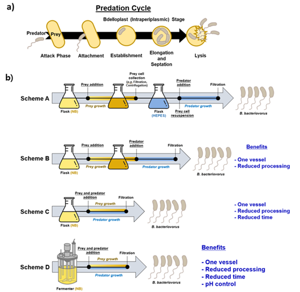 기존 포식성 박테리아를 배양하기 위해선 대장균을 배양한 뒤 대장균 세포만을 분리했다. 이를 다시 포식성 박테리아 배양액인 HEPES에 희석하고 포식성 박테리아를 넣게 된다. 이런 과정을 위해 각기 다른 플라스크가 필요하고 48시간 이상의 배양시간이 필요하다.
